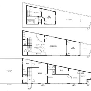 建物床面積・間取・築年月 | 251.57㎡・1階テナント×3、2階3階2LDK・1986年10月築 |