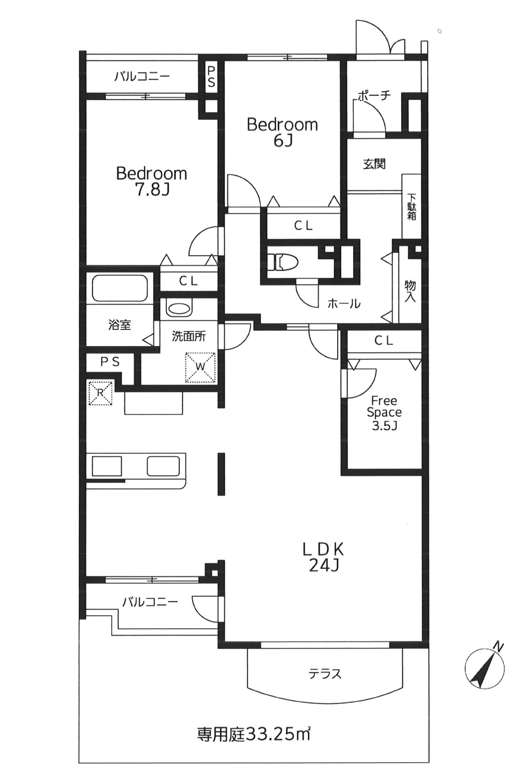 | その他 | 専用庭33.25㎡。ペット可(規約あり)。敷地内駐車場・空あり(月9,220円) |