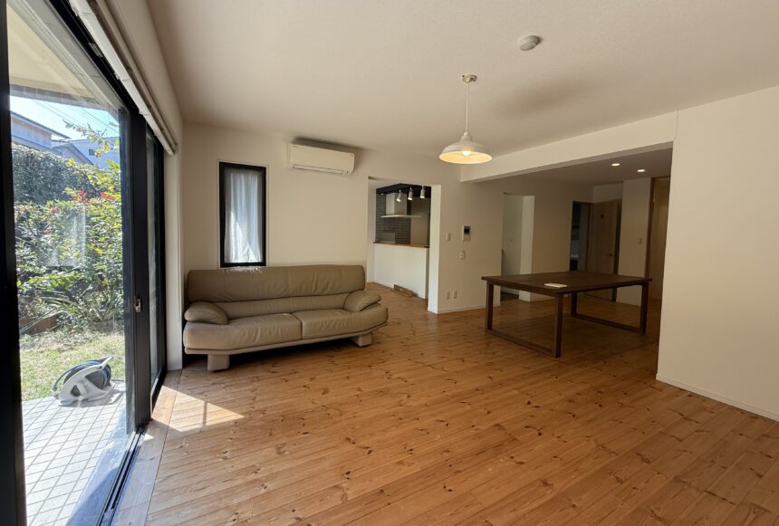 快適な住環境に建つ低層の落ち着いたマンション「葉山センチュリーマンション」。広々した室内は100㎡近くあり、ゆったりサイズ。庭付のこの部屋はリビングやキッチンから緑を眺める事が出来て、心が安らぎます。海までも程良い距離、暮らしに必要な施設等にも困る事はないでしょう。駐車場は平置きなので、背の高い車でも駐車OK。